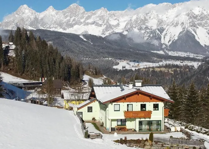 Haus Schutter Appartement van 40 m^2 biedt een skiopslag en skiverhuur voor skiliefhebbers in het centrum van Schladming. Het 1-slaapkamer appartement biedt uitzicht op de berg.